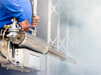 Micro nébulisation d’un agent désinfectant agréé pour le traitement des volumes (chambre, bureau, vestiaires, entrepôts logistiques, camion frigorifique…).